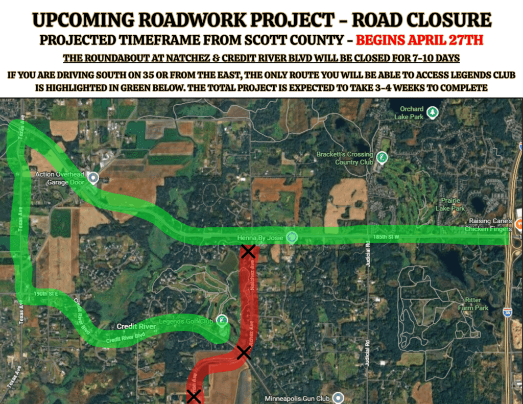Legends Club, recognized as National Golf Course of the Year, is an 18-hole championship course nestled in a wooded, yet marshy area on the border of Lakeville and Prior Lake in Minnesota. It is conveniently located just 2 miles west from Highway 35, about 25 minute drive from both downtown Minneapolis or St. Paul and 20 minutes from the Mall of America/Airport.
